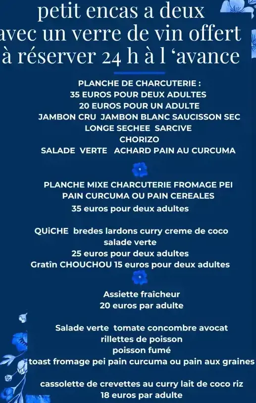 Possibilité de réserver un diner pour deux sous forme de planche, assiettes 24 H à